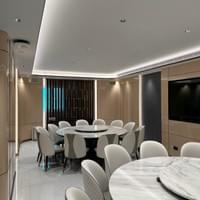 selection to lighting effects, ensuring it matches the professional and elegant brand image. Recessed magnetic track lights offer a simple and clean aesthetic for the meeting room, allowing for flexible adjustments to different lighting styles at any time.